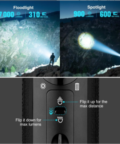 -Dual-beam with Spot and Flood: An array of LEDs offers two powerful beam choices: a 600-meter max throw from the central LED’s spotlight beam or a 7,000-lumen max output floodlight beam from the 9 surrounding LEDs.